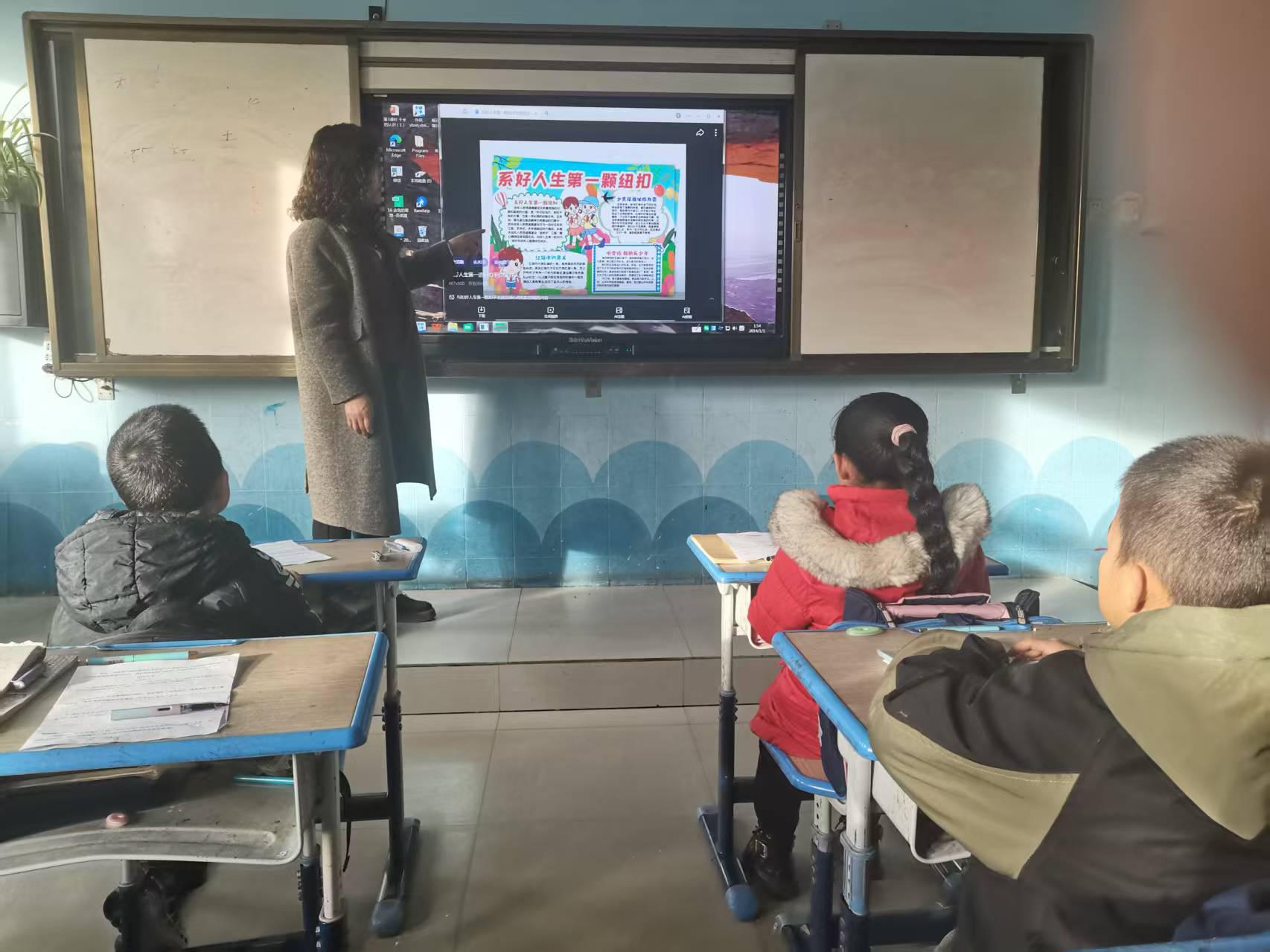 裴家营中心小学关工委主题活动在庄严的队歌声中正式启幕。关工委成员与辅导员精准设计“榜样力量润童心”视频观学、品行故事分享等环节,引导青少年在直观感受中读懂“扣好人生第一粒扣子”的丰富内涵,明确新时代青少年的品德标尺与责任担当。整场活动环节紧凑、内容扎实,将思想道德教育从理论层面转化为可感知、可践行的具体指引,切实推动育人成效落地生根。