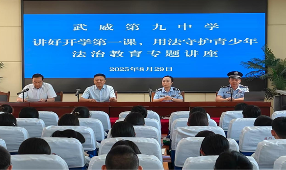 武威第九中学法治副校长走进课堂,以“讲好开学第一课,用法守护青少年”为主题,围绕电信诈骗、校园欺凌、交通安全、防毒品四大板块,为同学们呈现了一堂生动而富有教育意义的法治安全教育课。不仅为新学期注入了满满的法治正能量,更在青少年心中播下了法治的种子,有效提升了师生们的法治观念和安全意识。