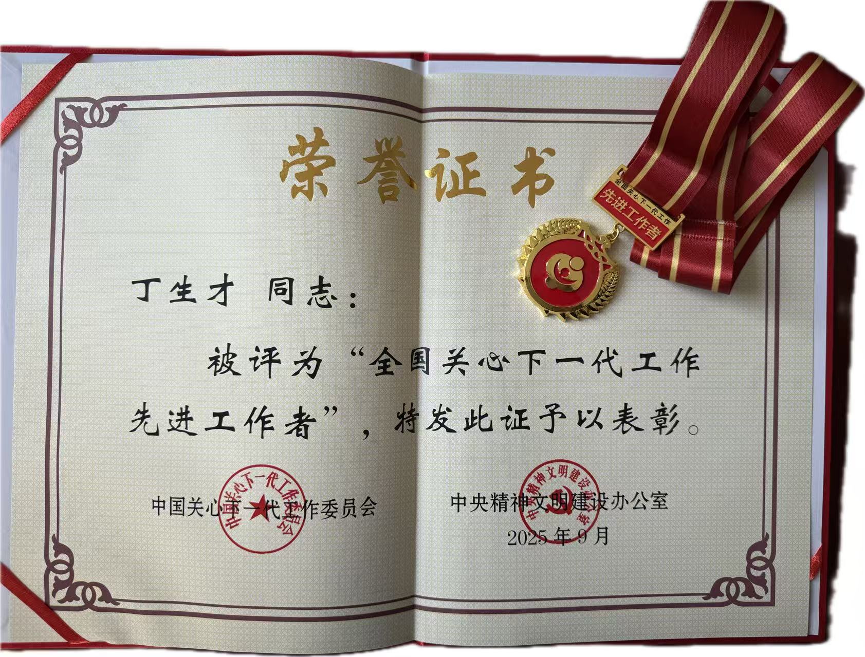 丁生才先后获得“全国关心下一代工作先进工作者”等多项荣誉,他说:“荣誉不重要,孩子们有出息才是最大的奖励。”