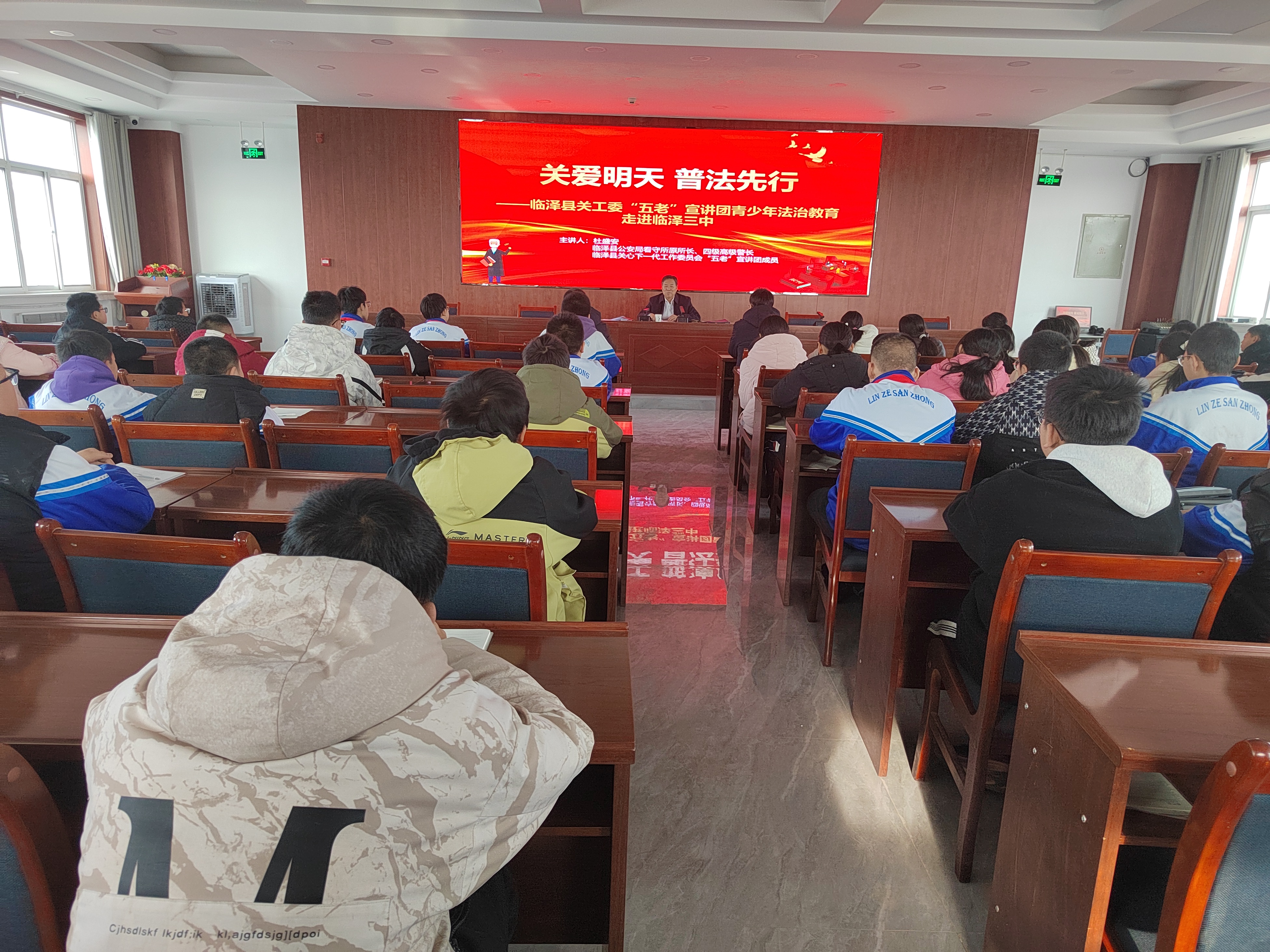 为深入学习贯彻习近平法治思想,落实立德树人根本任务,12月30日,临泽县关工委组织“五老”宣讲团走进临泽三中,开展“关爱明天·普法先行”青少年法治教育活动,为青少年送上了一堂生动实用的法治“必修课”。