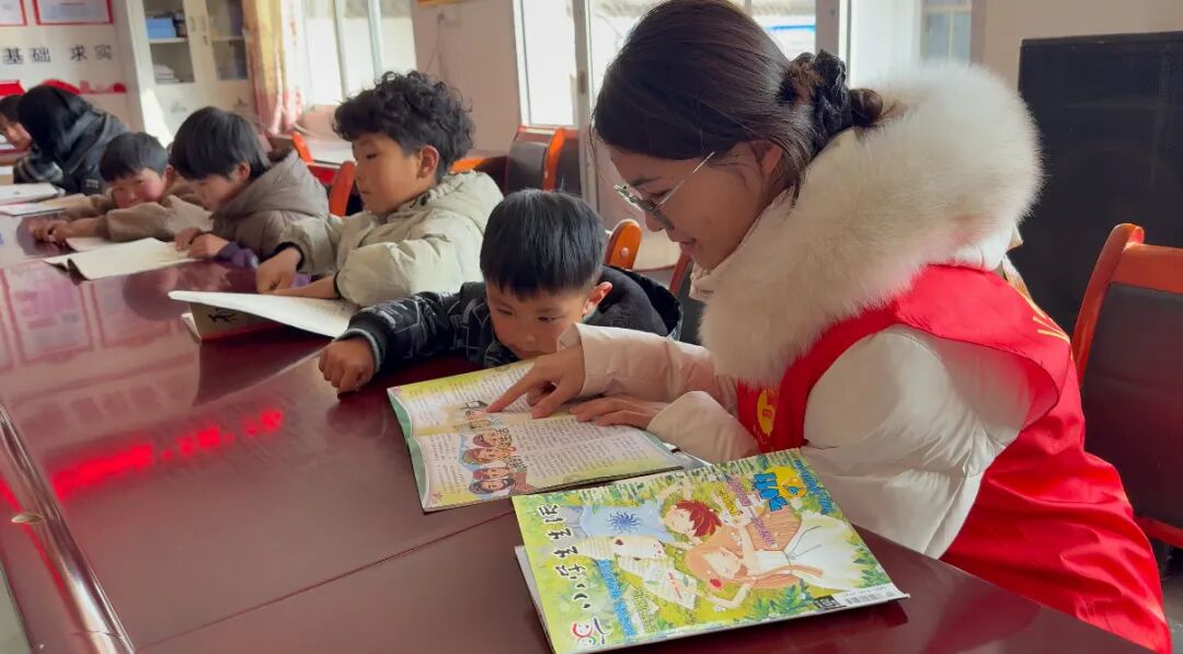 篮球兴趣班同样热闹非凡,课程围绕运球、传球、投篮等基本功展开,还组织了分组对抗赛。奔跑的身影、欢快的笑声,不仅增强了孩子们的身体素质和协调能力,更培养了他们的团队协作意识。张家村依托农家书屋及捐赠图书,打造了温馨的阅读空间。志愿者通过故事分享、阅读指导、角色扮演等互动形式,激发孩子们的阅读兴趣,帮助他们养成良好的阅读习惯,用书香滋养心灵。