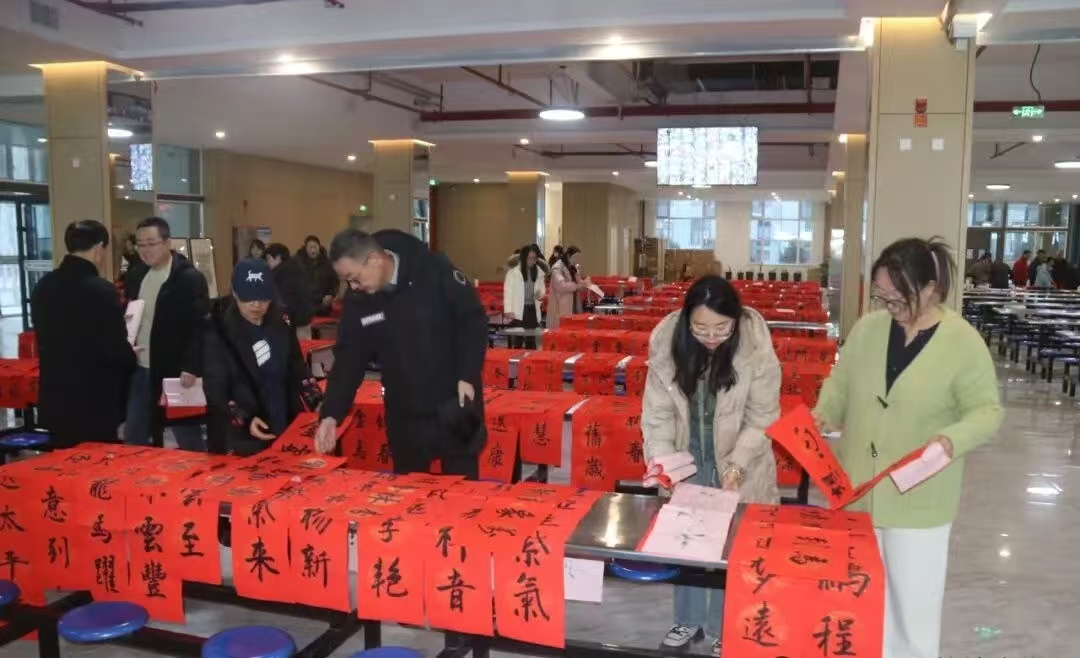 红联溢彩,翰墨传情。此次活动不仅是一场文化的浸润,更是一次温暖的传递。老师们围绕在书案旁,欣赏品评,挑选心仪的联句,脸上洋溢着喜悦的笑容。大家纷纷表示,手写的春联年味更浓、情意更重,这份融合了敦煌文化底蕴与组织关怀的“文化年礼”,让冬日的校园充满了暖意,也让身为教育工作者的他们倍感尊重与鼓舞。