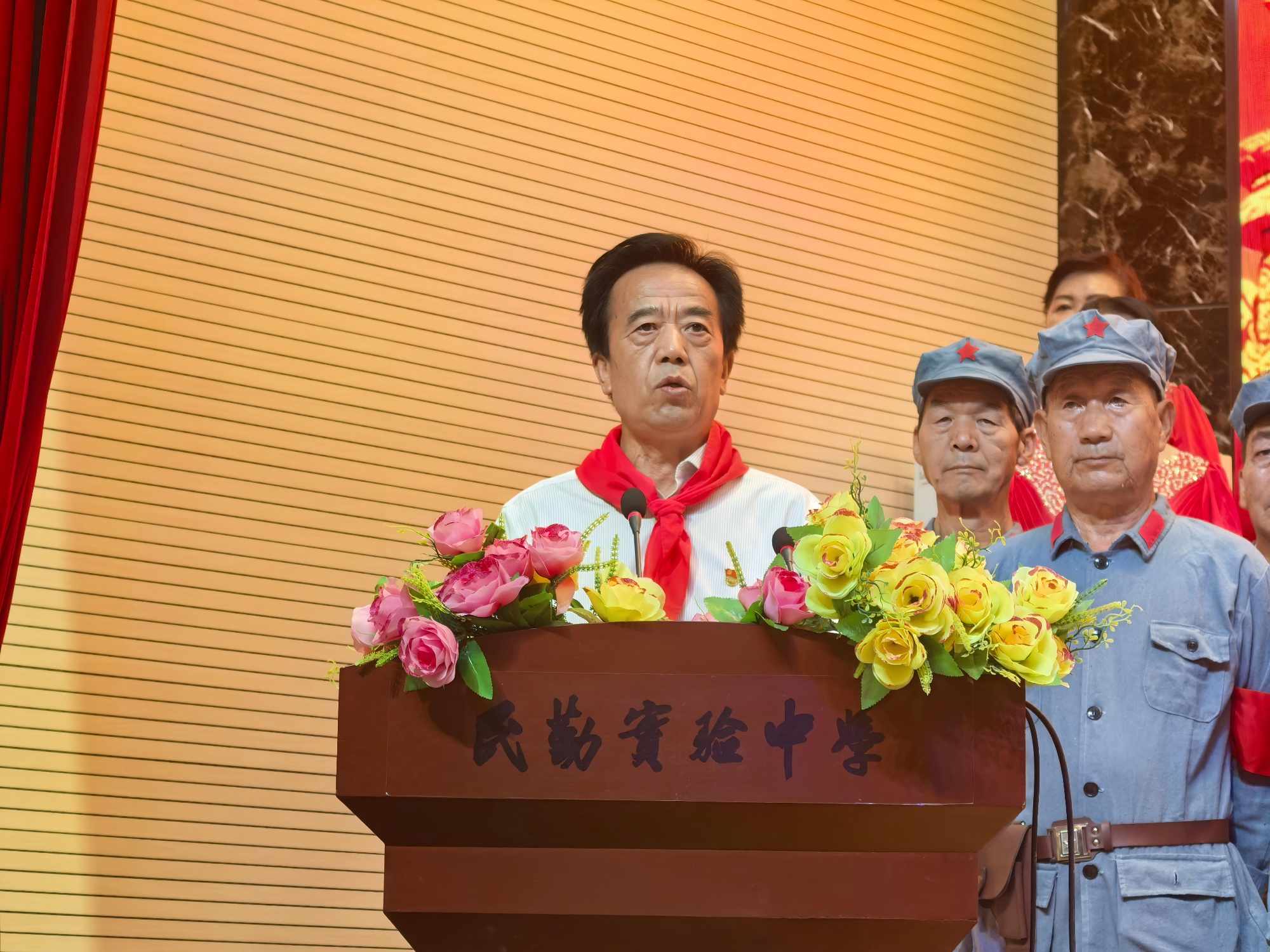 在纪念中国人民抗日战争暨世界反法西斯战争胜利80周年之际,民勤县关工委联合县教育局在实验中学举办抗战经典红歌老少大联唱活动,教育引导广大青少年深刻感悟伟大抗战精神,汲取奋进力量,立志为实现中华民族伟大复兴而接续奋斗。“五老”代表与青少年学生共计300余人参加了活动。