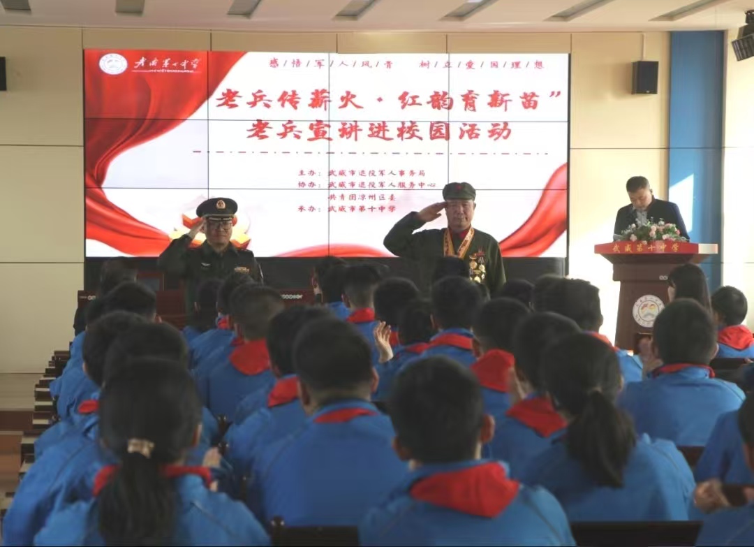 为厚植青少年爱国主义情怀、赓续红色血脉、深化校园国防教育,一场主题为“老兵传薪火?红韵育新苗”的老兵宣讲进校园活动于3月18日在武威第十中学温情启幕。本次活动由武威市关工委、市退役军人事务局联办,武威市退役军人服务中心、共青团凉州区委协办,特别邀请功勋老兵与现役军人走进校园,为全校师生呈现一堂沉浸式红色思政课。