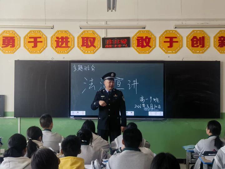 宣讲过程中,政法干警们紧贴青少年认知特点,创新采用“以案说法、以案释法”的暖心形式,用真实鲜活的身边故事诠释法律,让法治理念真正入脑入心。宣讲内容聚焦道路交通安全、禁毒防毒常识、预防校园欺凌、防范电信网络诈骗等青少年成长高频风险点领域,针对性极强,实用性十足。干警们结合典型案例,细致剖析各类违法违规行为对青少年成长的危害,拆解风险防范技巧,耐心传授遭遇侵害时的自救自护方法,引导广大学生树立正确法治观念,自觉学法、知法、守法、用法,明辨是非、远离不良诱惑,全面提升自我保护能力,扣好人生“法治扣子”。学生们全程投入、互动积极,纷纷表示收获颇丰,不仅学到了实用的法治安全知识,更掌握了有效的自护技能,今后将自觉争做尊法学法守法用法的新时代好少年。